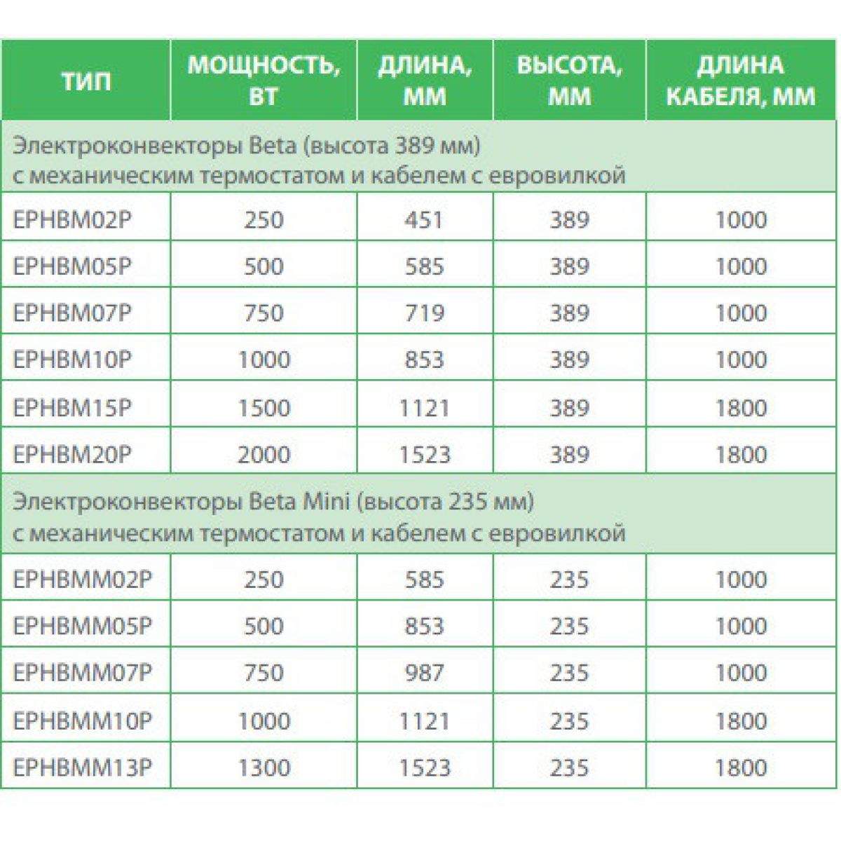 Електричний конвектор Beta, з електронним термостатом і штепсельною вилкою, 1500 Вт